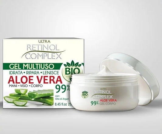 Prezzo di listino €10,90 EURPrezzo di listinoPrezzo unitario / perPrezzo scontato €10,90 EURGel Multiuso Aloe Vera 99% Ultra Retinol Complex - Idrata, Ripara, Lenisce