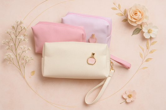 Regular price €2,50 EURRegular priceUnit price / perSale price €2,50 EURBustina Porta Trucco Elegante - Rosa Chiaro, Giallo Chiaro, Rosa Scuro