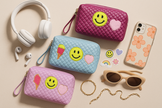 Regular price €3,90 EURRegular priceUnit price / per€5,00 EURSale price €3,90 EURSaleBustina Porta Trucco Trapuntata con Emoji - Rosa, Argento, Fucsia